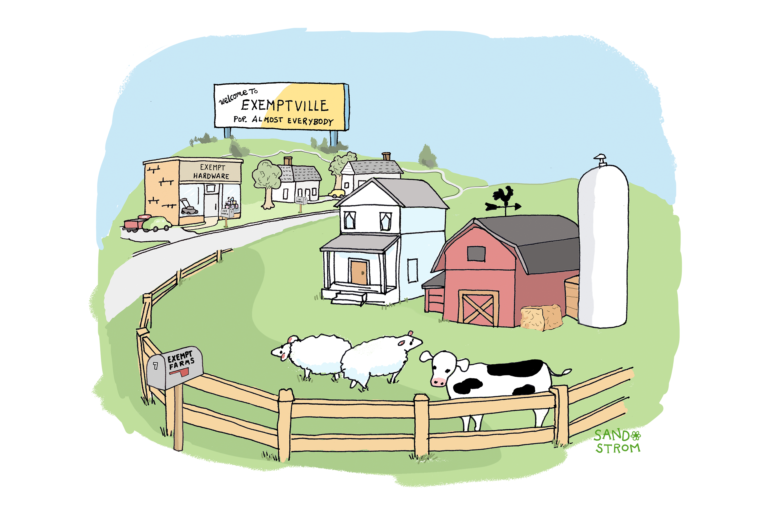 If an estate is worth less than a certain amount, it is automatically exempt. The exemption amount varies by state, from $1 million in Oregon up to $13 million in Connecticut in 2024. Larger estates are taxed only on the amount above the exemption. They can further reduce their tax with additional deductions for expenses, debts, and donations, and because the basic exemption is effectively doubled for married couples. After applying the exemption and deductions, a graduated tax rate — typically capped at 16 percent — is applied to the remaining value. Vanishingly few family farms and small businesses pay estate taxes because of the high exemption levels and deductions. The few that would still be subject to tax often owe little or nothing because of additional tax breaks targeted specifically at the wealthiest of small business and farm owners.