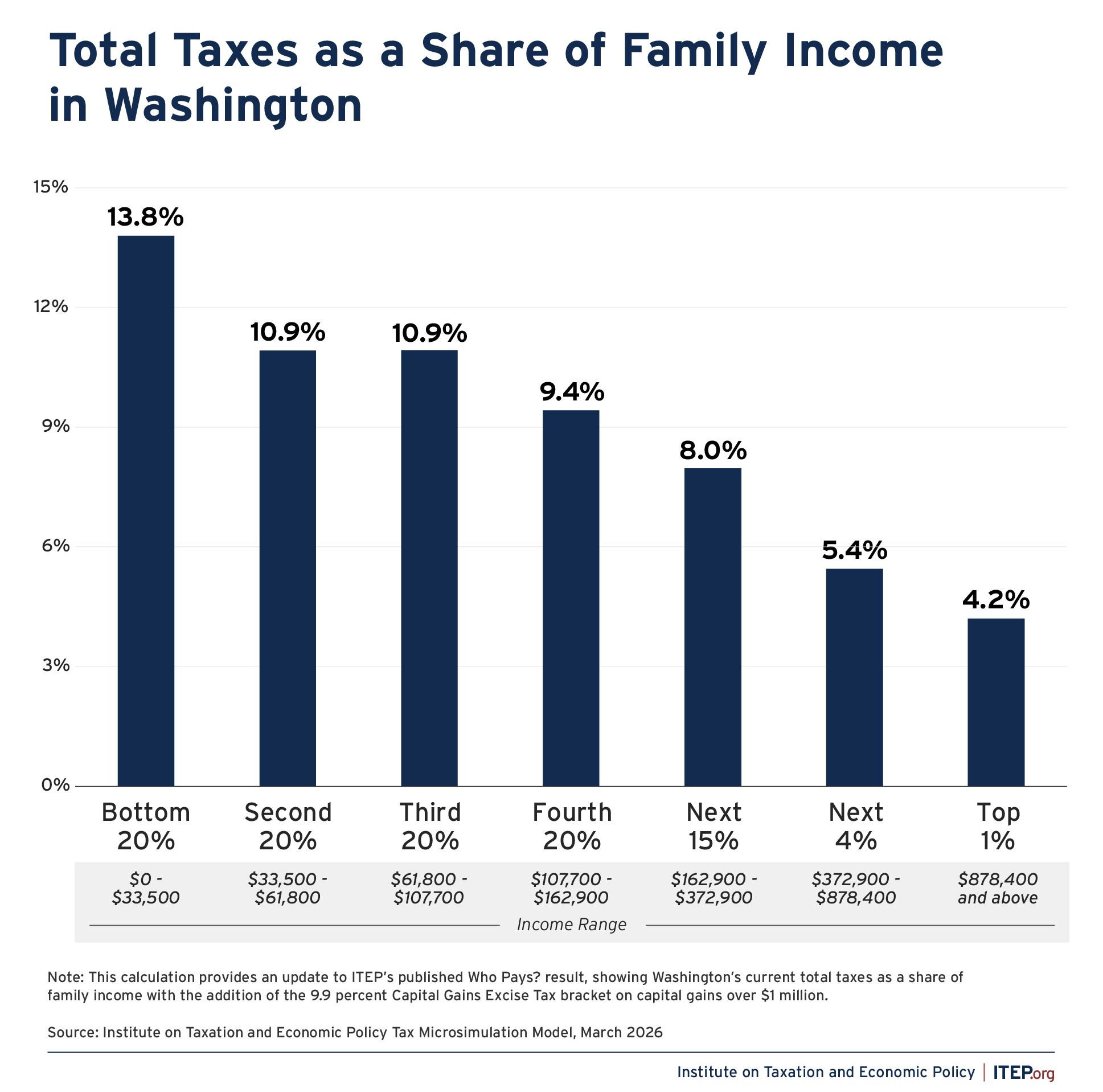 Washington’s tax structure is woefully unequal, with its lack of an income tax helping to earn its place as the second most regressive state and local tax system in the country. While lawmakers have made progress in recent years by creating and later enhancing their Capital Gains Excise Tax, families in the bottom 20 percent still pay an effective tax rate over three times what those in the top 1 percent pay.