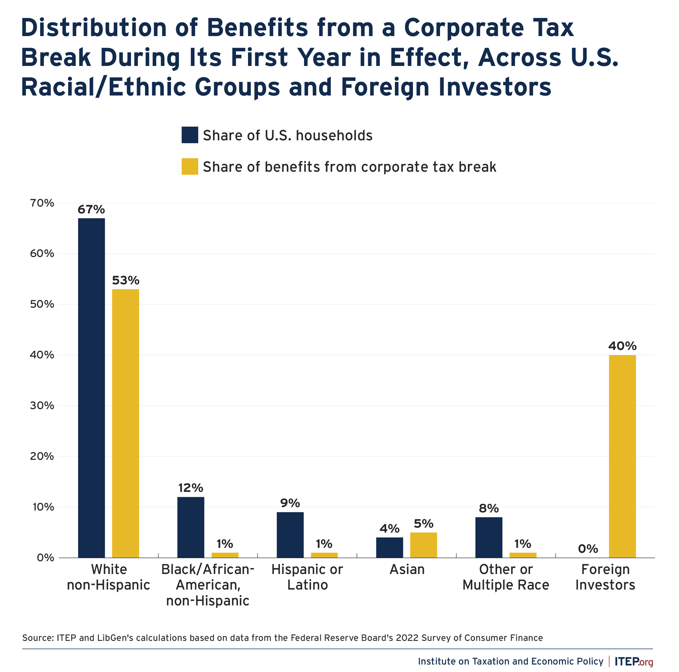 5. Corporate tax breaks and corporate tax avoidance worsen racial inequality in the U.S. while Americans of all races overall lose to foreign investors.